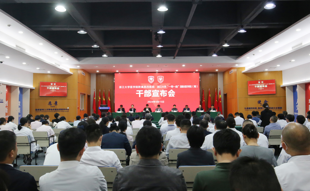 On April 15, the Fourth Affiliated Hospital of Zhejiang University School of Medicine and the the Belt and Road International School of Medicine held a cadre announcement meeting. Li Xiaoming, member of the Standing Committee of the Party Committee and Vice President of Zhejiang University, Huang Hefeng, academician of the CAS Member, president of the School...