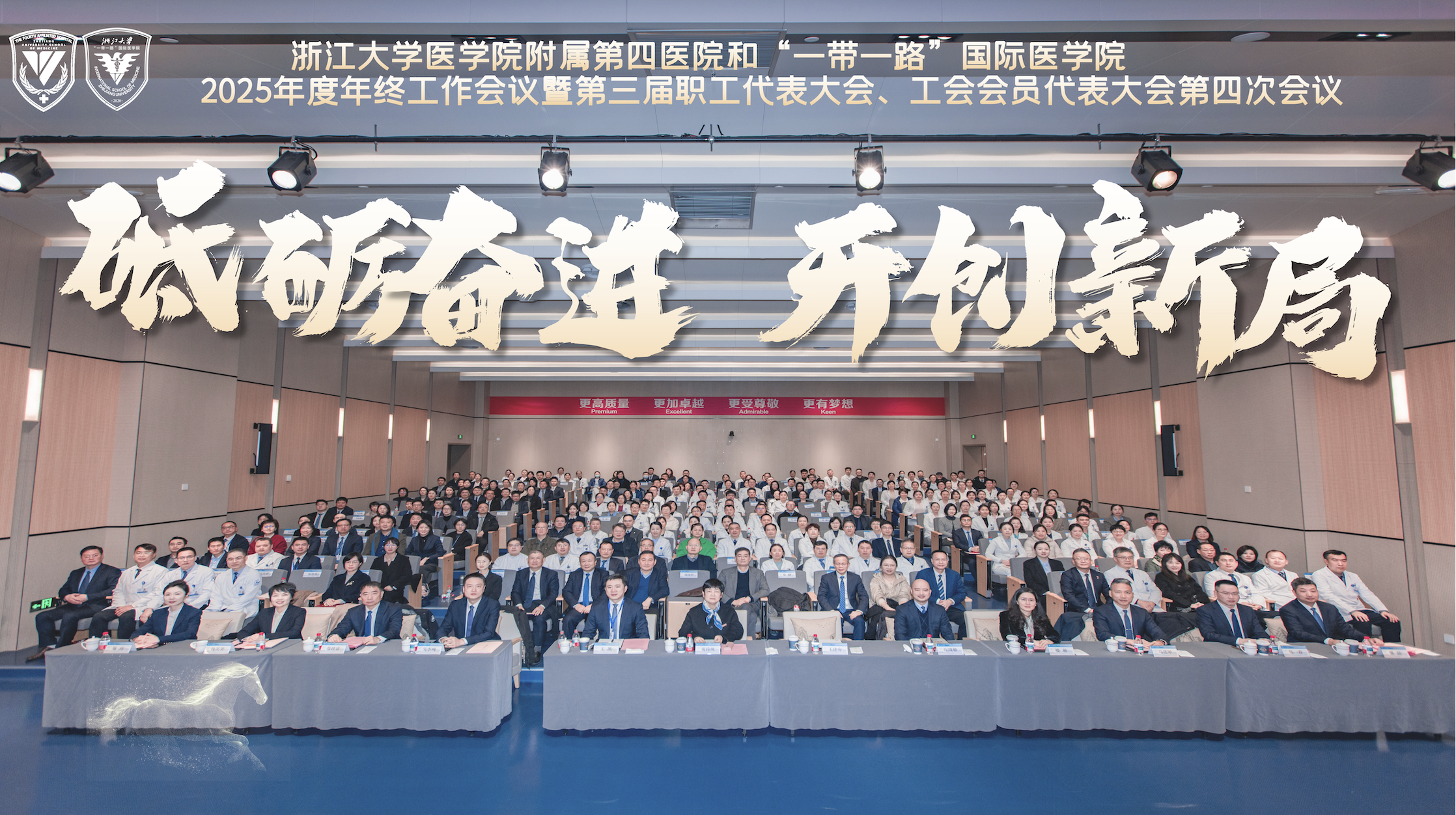 岁聿云暮,新元启序;华章日新,征程再启。2月1日,浙江大学医学院附属第四医院和浙江大学“一带一路”国际医学院2025年度年终工作会议暨第三届职工代表大会、工会会员代表大会第四次会议顺利召开。中国科学院院士、浙江大学医药学部主任黄荷凤,中国科学院院士、浙大二院院长王建安,浙江大学医学院常务副院长应颂敏出席本次大会。浙大四院和国际医学院党委书记王凯作主题报告,浙大四院...