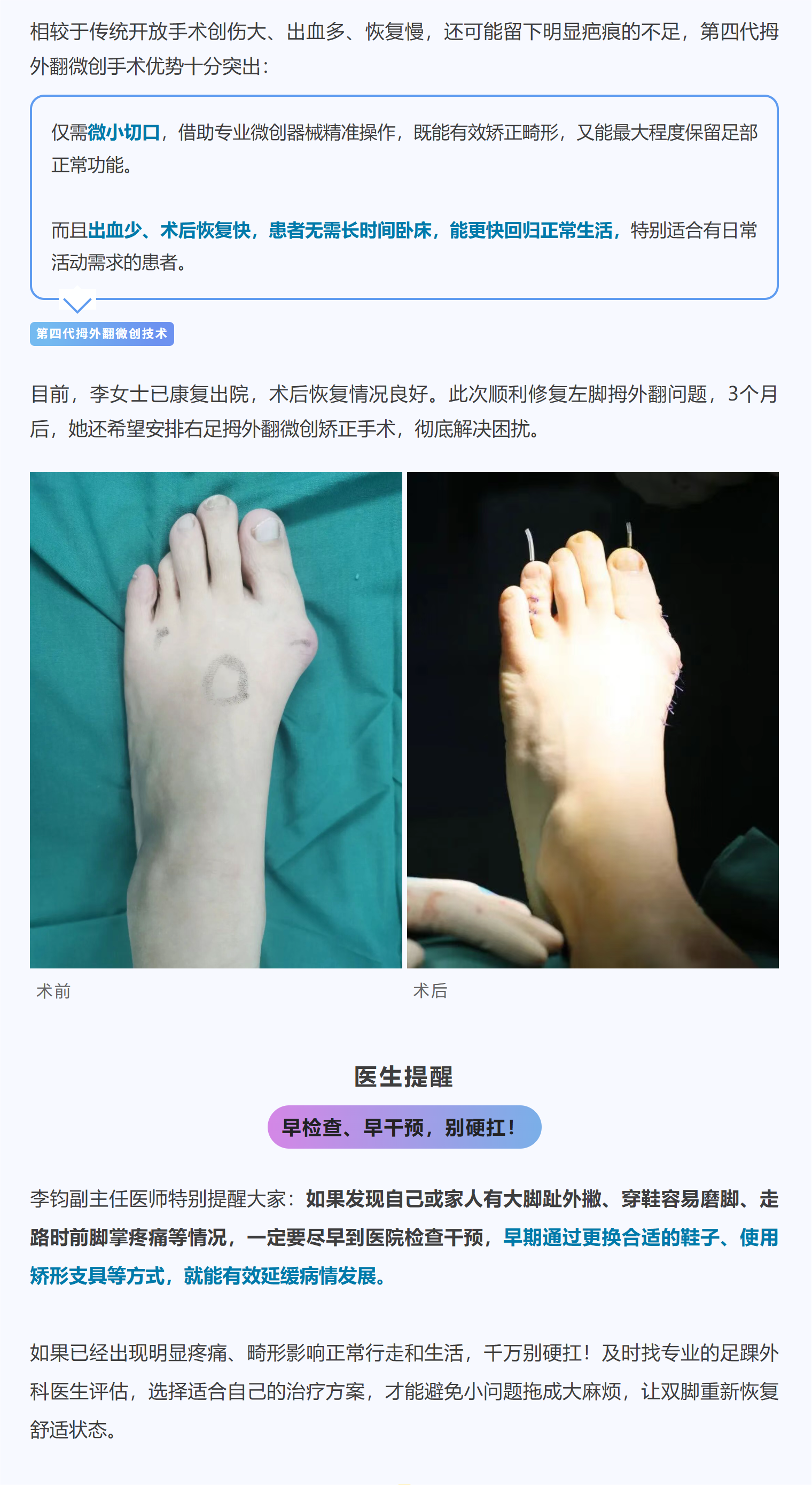 大脚趾外翻20多年,疼得走不了路!这种畸形别硬扛,浙大四院手足外科开展第四代拇外翻微创手术