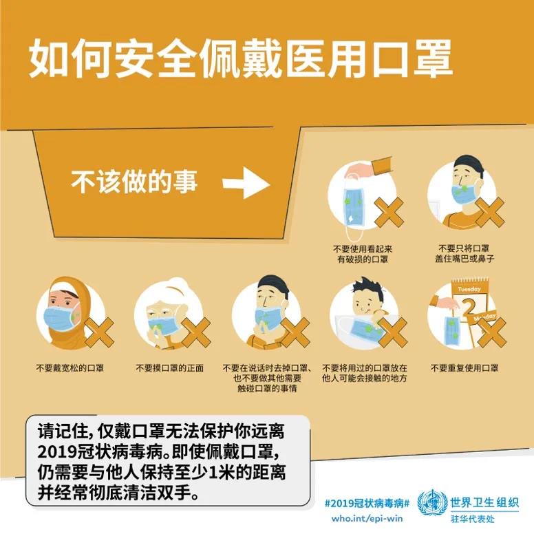 记住,仅戴口罩不能保护你远离2019冠状病毒病。还需要与人保持一米距离并经常且彻底地洗手,哪怕你已经戴了口罩。