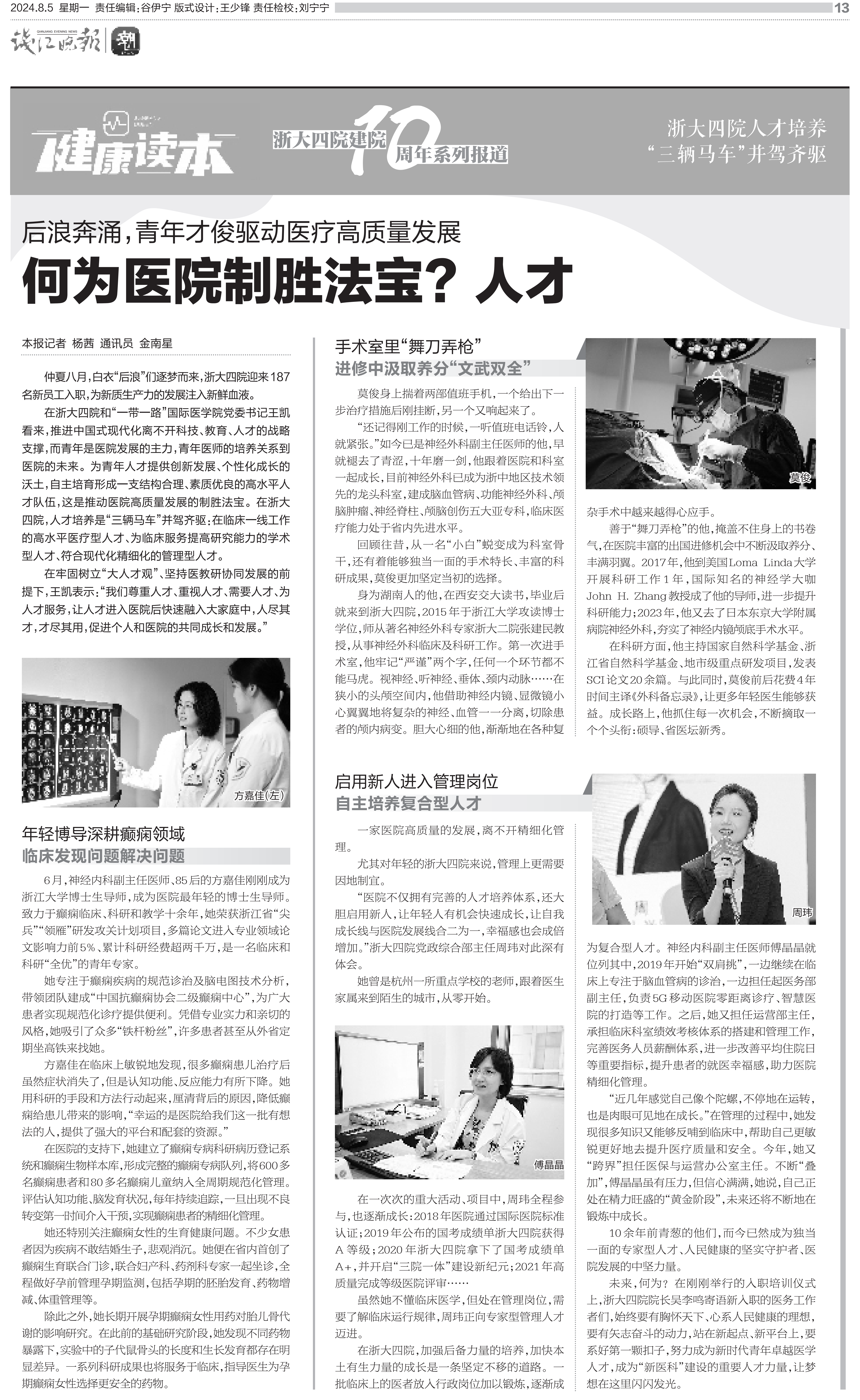 【钱江晚报】后浪奔涌,青年才俊驱动医疗高质量发展 何为医院制胜法宝?人才