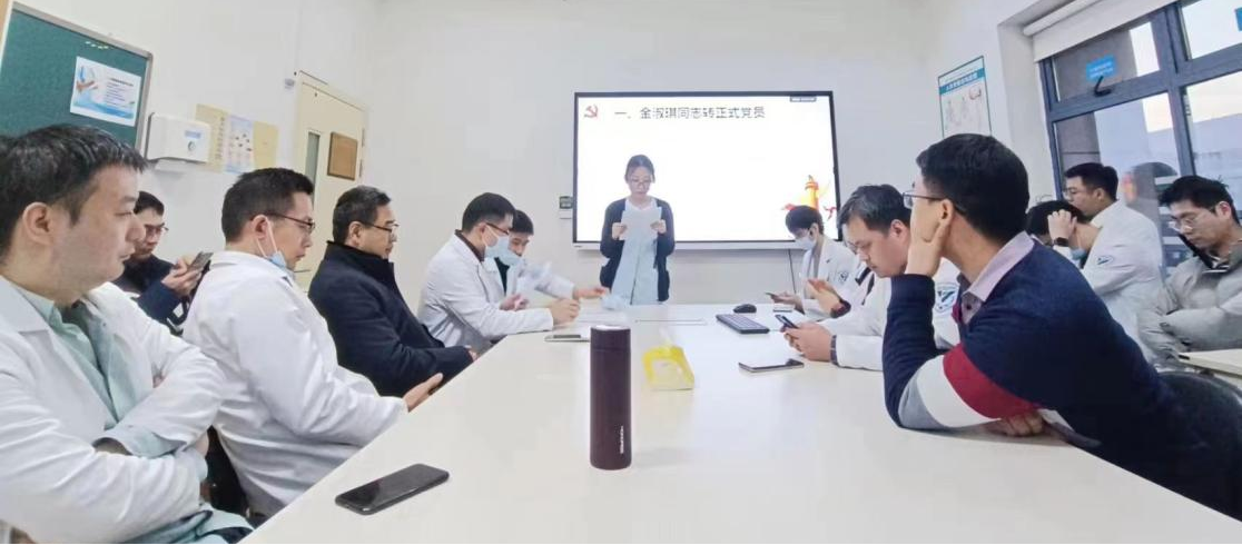 会议第二项,讨论金淑琪同志转为正式党员的事宜,虽然来院时间较短,经支部重新指派吴冰冰及李慧两位同志作为其入党联系人后,大家也发现她是一位思想进步,工作努力,学习积极的年轻同志,在座各位党员同志经无记名投票表决,一致同意金淑琪同志转为正式党员。